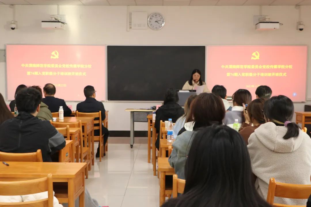 为进一步提高入党积极分子的政治素质和理论修养,确保新发展党员质量。根据公司党委组织部相关要求,公司党总支于2023年11月22日下午在富平校区教学楼1110教室举行第74期入党积极分培训班开班仪式。公司党总支书记田康顺、经理曹熙斌、党总支副书记周双、师生融合党支部全体委员及31名入党积极分子参加开班仪式,会议由党务秘书侯美颖主持。