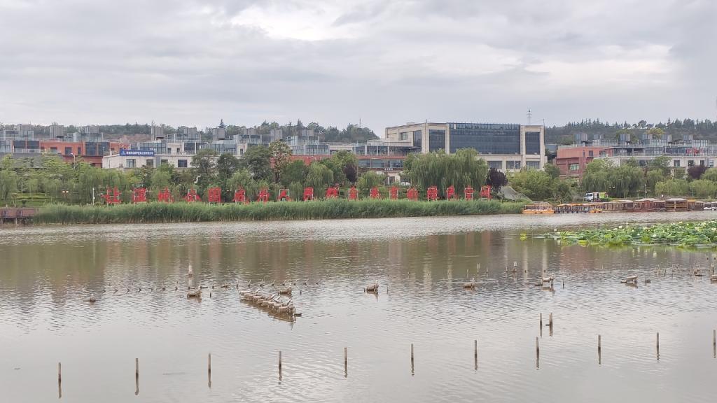 再往深处,湿地与城市建筑相映成趣。河畔建筑错落,湿地绿植蓬勃,“让湿地公园成为人民群众共享的绿色空间”的标语醒目。这是生态与城市的对话,见证着湿地作为城市绿肺,为居民带来清新与惬意,让“三下乡”不止于观察,更体会到生态建设的温度。